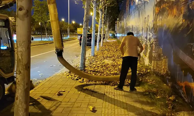 在夜深人靜到街道,大多數人已經進入了睡眠之中,但是我們環衛工人還在道路上進行著樹葉收集工作,為了保障第二天的道路不會影響實名正常同行只能在深夜進行樹葉收集工作,還好有這臺樹葉收集車“保駕護航”,讓原來好幾個小時才能完成的工作在點時間內就輕松解決。
