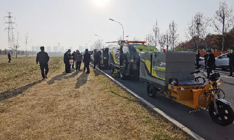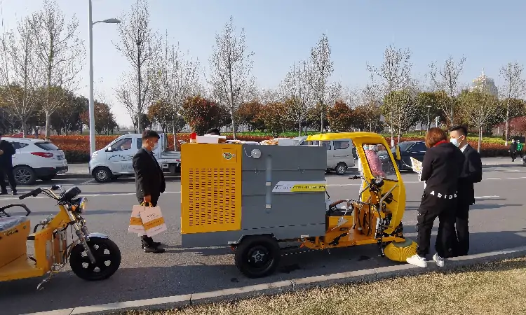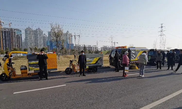 三輪高壓清洗車以及其他環衛車輛試車現場