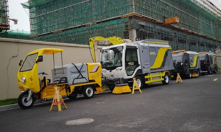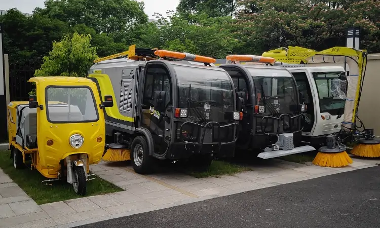 近日浙江某環衛公司為了更好的使用環衛車輛配合作業,引進了多款不同型號的環衛清潔車輛,有小型三輪高壓清洗車,電動洗掃車,樹葉收集車,四輪高壓清洗車,它們都在各個領域有著不同的用途,而且性能突出,使用簡單,純電動行走動力綠色環保。